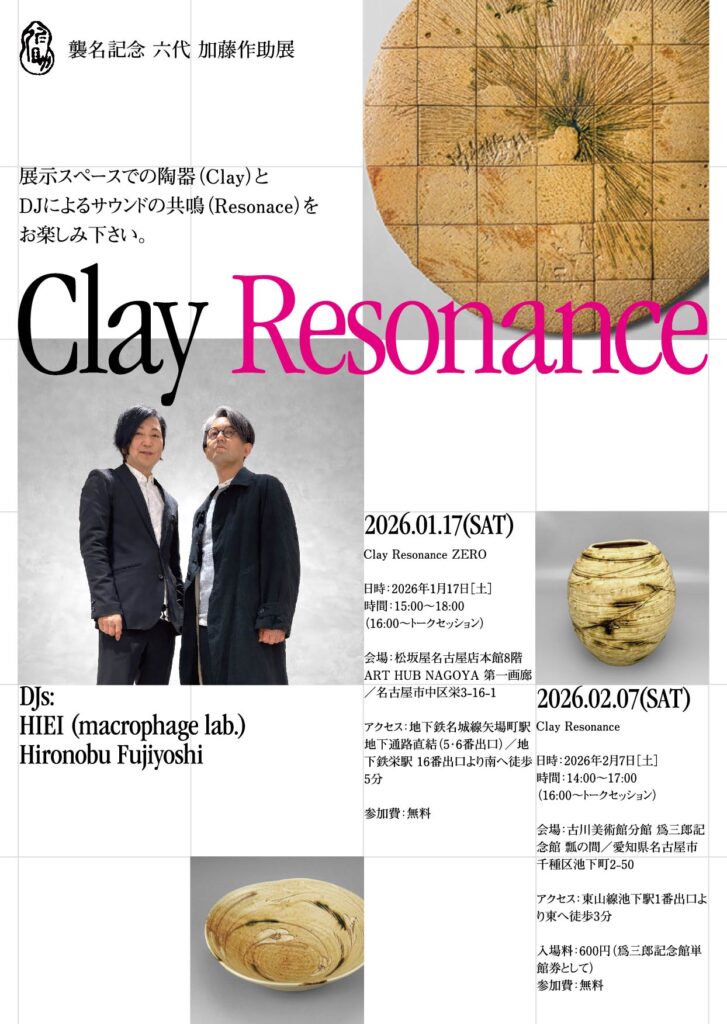 襲名記念 第六代加藤作助展会期中のイベントとして、展示空間のサウンドデザインをさせていただきます。